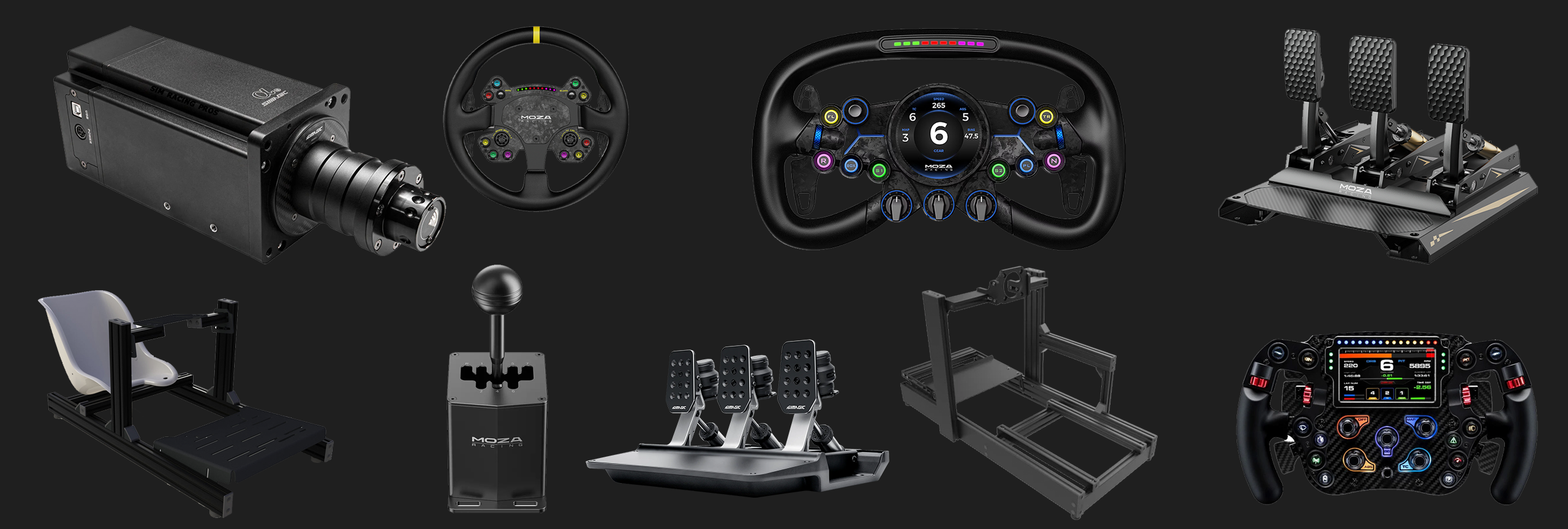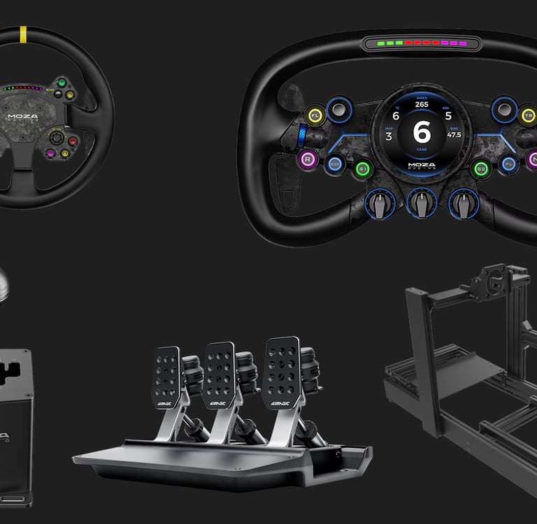 Accessories: Enhance your setup with shifters, button boxes, motion systems, and VR integration.